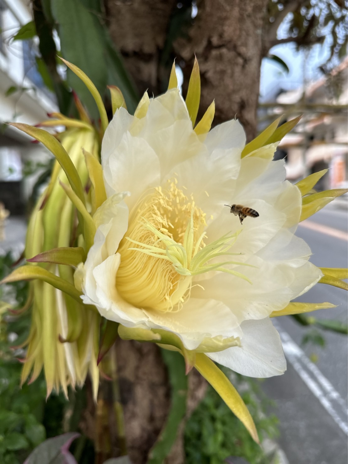 サボテンの花とハチ